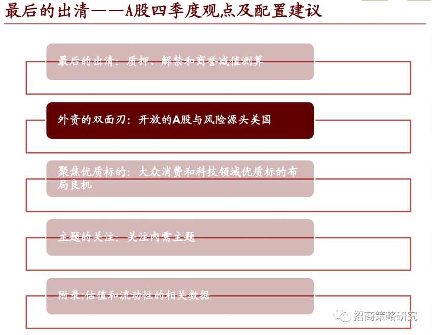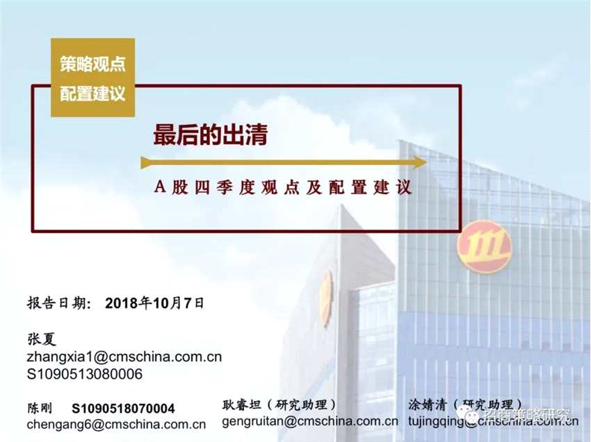 摘要: 來(lái)源:招商策略研究本文作者為招商證券策略師張夏、陳剛、耿睿坦、涂婧清,原文標(biāo)題《最后的出清——A股四季度觀點(diǎn)及配置建議》。張夏團(tuán)隊(duì)