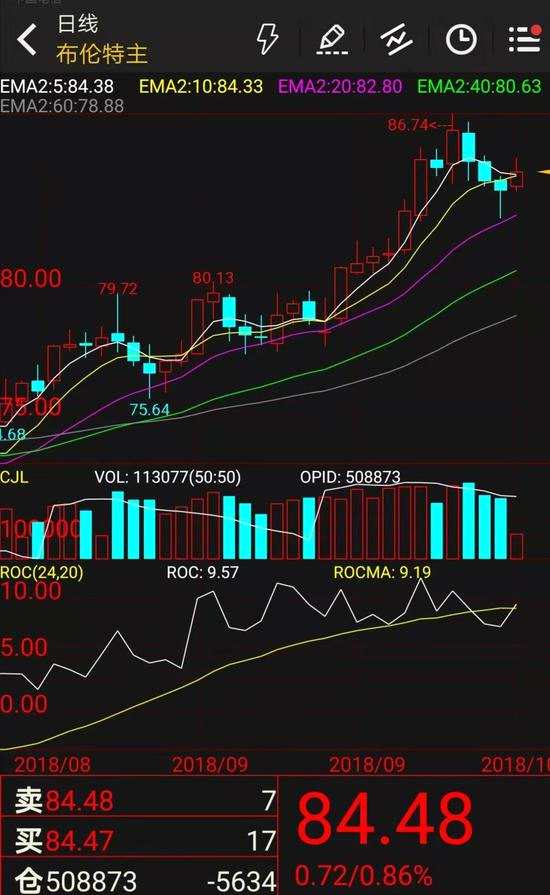 截至10月9日,布倫特原油期貨主力合約報(bào)價(jià)徘徊在84.65美元/桶附近,連續(xù)第七日上漲,期間走出四年來最高價(jià)86.74美元/桶。
