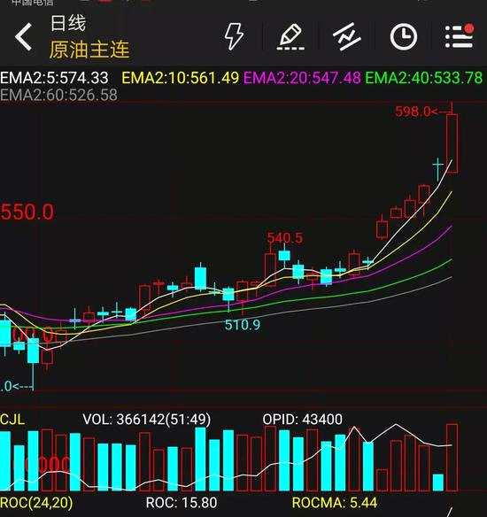 國內(nèi)原油期貨自今年3月中國原油期貨上市以來,隨著油價(jià)持續(xù)攀升,成交量不斷放大。截至10月9日收盤,上海國際能源交易中心SC1812合約收報(bào)592.9元/桶,全天上漲4.05%。持倉量增加256手至43400手。