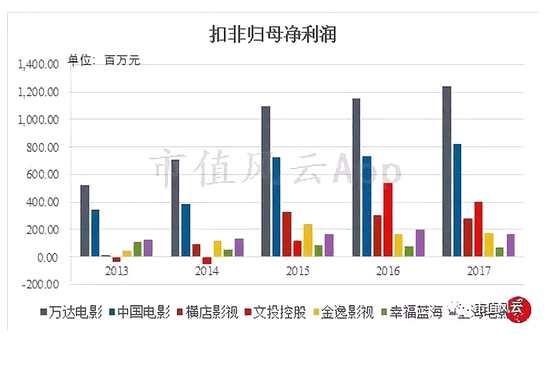 從歸母扣非凈利潤(rùn)及凈利潤(rùn)指標(biāo)看,目前排在前三甲的分別是萬(wàn)達(dá)電影、中國(guó)電影、文投控股。