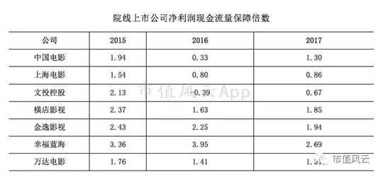 總體上,A股院線上市公司經(jīng)營(yíng)現(xiàn)金流凈額基本都與凈利潤(rùn)都有較好的匹配,大多數(shù)公司凈利潤(rùn)現(xiàn)金流量保障倍數(shù)超過1。