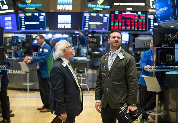 10月10日,交易員在美國(guó)紐約證券交易所工作。新華社記者 王迎 攝