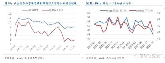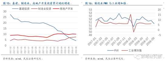 再次,國(guó)內(nèi)消費(fèi)疲軟,同樣給制造業(yè)帶來景氣下行壓力。 2018年8月,社會(huì)消費(fèi)品零售總額同比增長(zhǎng)率僅9%,而限額以上零售企業(yè)的銷售額增速僅為5.9%。9月的PMI在手訂單指數(shù)僅為45.2,較前值下降1.5,表明內(nèi)需受限于國(guó)內(nèi)消費(fèi)疲軟。在面臨成本壓力,內(nèi)外需均不振的情況下,制造業(yè)未來景氣度堪憂。同時(shí),國(guó)內(nèi)去產(chǎn)能的政策限制了制造業(yè)的投資空間,行政化的限產(chǎn)也提升了制造業(yè)投資的風(fēng)險(xiǎn)。未來制造業(yè)投資仍難以大幅增長(zhǎng),并難以對(duì)經(jīng)濟(jì)增長(zhǎng)構(gòu)成較大貢獻(xiàn)。