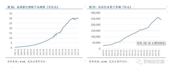 吸收充裕流動(dòng)性的“蓄水池”機(jī)制出現(xiàn)變化——包括房地產(chǎn)、影子銀行、P2P等,提高了銀行間流動(dòng)性充裕向通貨膨脹傳導(dǎo)的可能性。2003年至2015年,我國(guó)M2月度同比增速的均值為16.94%,明顯高于同期9.83%的實(shí)際GDP增速,而我國(guó)的CPI月均同比增速均值僅為2.8%。較高的貨幣發(fā)行量并未導(dǎo)致通貨膨脹的原因是我國(guó)有房地產(chǎn)市場(chǎng)、銀行理財(cái)、影子銀行、P2P等資金蓄水池,吸收了大量的流動(dòng)性。2007年至2016年底,我國(guó)銀行理財(cái)產(chǎn)品規(guī)模從0.53萬億元增長(zhǎng)至29萬億元。2010年至2017年末,我國(guó)信托行業(yè)資產(chǎn)余額從2.37萬億元增長(zhǎng)至26.25萬億元。2014年至2017年末,我國(guó)P2P貸款余額從309億元增長(zhǎng)至1.22萬億元。2003年至2017年,我國(guó)商品房銷售額從0.8萬億元增長(zhǎng)至13.37萬億元。隨著資管新規(guī)對(duì)影子銀行的規(guī)范,今年以來,銀行理財(cái)、信托、非標(biāo)融資額都出現(xiàn)收縮,P2P貸款也在信用問題凸顯后規(guī)模急劇收縮。隨著棚改貨幣化政策力度減弱,明年房地產(chǎn)銷售增速也有可能放緩。吸收流動(dòng)性的“蓄水池”機(jī)制面臨較大變化,因此,充裕的流動(dòng)性可能造成通貨膨脹。
