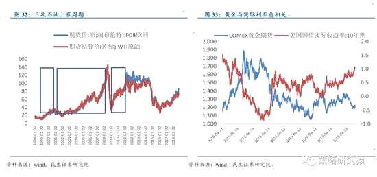 三次上漲周期中黃金與原油走勢(shì)趨同,油價(jià)上漲將帶動(dòng)黃金價(jià)格上漲。在三次周期中,LME黃金分別上漲-4%,232%及97%。三次石油上漲周期中,黃金的走勢(shì)基本上與原油走勢(shì)趨同,未來油價(jià)仍有較大可能繼續(xù)上漲,油價(jià)上漲有望帶動(dòng)黃金價(jià)格上漲。
