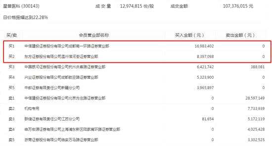 盤后數(shù)據(jù)顯示,五營(yíng)業(yè)部席位合計(jì)買入星普醫(yī)科4109.2萬元,中信建投成都南一環(huán)路營(yíng)業(yè)部席位買入最多,當(dāng)天買入1698.34萬元。【東方證券(600958)、股吧】溫州信河街營(yíng)業(yè)部席位買入839.71萬元。這兩個(gè)席位在星普醫(yī)科上的賣出金額均為0。