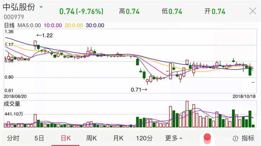 今日A股大盤繼續(xù)慣性下探,備受市場(chǎng)關(guān)注的中弘股份一字跌停,報(bào)0.74元,股票已連續(xù)20個(gè)交易日收盤價(jià)低于股票面值(即1元)。