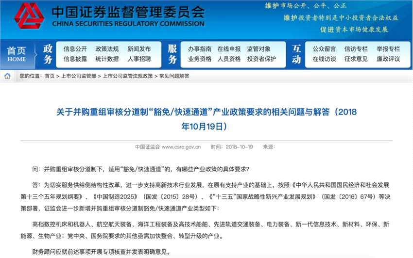 摘要: 證監(jiān)會一日三提并購重組改革,多項利好高新企業(yè)的政策已趕來原創(chuàng):徐昭并購重組動作連連!今日晚間,證監(jiān)會發(fā)布關(guān)于并購重組審核分道制“豁免/快速通道”產(chǎn)業(yè)政策要求的相關(guān)問題與解答稱,證監(jiān)會進一步新增并購重組