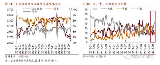 ? 基金持倉(cāng)方面,股票型、混合型基金整體倉(cāng)位(10月18日)分別較前一期(10月11日)小幅提升0.06%、0.17%至90.52%、80.06%。大盤股倉(cāng)位較前一期微降0.15%至42.85%;中盤股倉(cāng)位較前一期提高7.42%至21.87%,小盤股倉(cāng)位較前一期降低7.1%至13.41%。