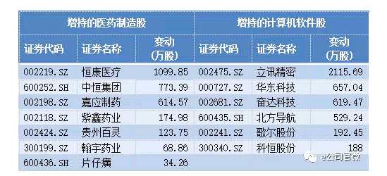 從行業(yè)分類來看,第三季度大資金更偏愛增持醫(yī)藥制造及計算機軟件兩個行業(yè)的股票,前者增持7股,后者增持6股。其中,醫(yī)藥制造行業(yè)的【恒康醫(yī)療(002219)、股吧】、計算機行業(yè)的立訊精密均增持超過一千萬股。