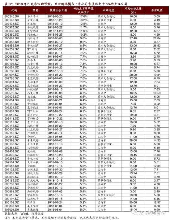 可以看到,今年以來A股市場總回購規(guī)模顯著高于2017年,而為了提振投資者信心增厚EPS的普通回購規(guī)模比例顯著高于2017年(36%vs10%),另外,從以上(4)可以看出,今年以來有部分公司屬于迫于股權(quán)質(zhì)押風(fēng)險而推出高比例的普通回購。