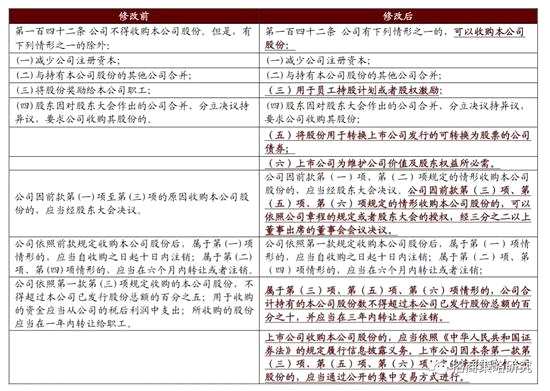 近期《公司法》修改正式通過,關(guān)于股票回購的新政策也隨之落地。具體而言,做了如下修改: