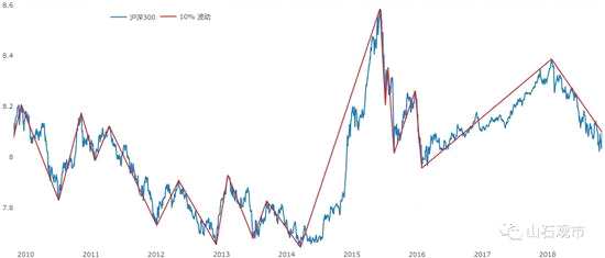 2010年以來,以滬深300指數(shù)為代表的大盤股10%級(jí)別波段如下: