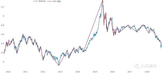 2010年以來,以中證500指數(shù)為代表的中小盤個(gè)股10%級(jí)別波段如下: