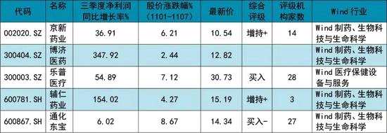 此外,這6只被機(jī)構(gòu)增持的醫(yī)藥股,在三季度也受到評(píng)級(jí)機(jī)構(gòu)的青睞?;鹁樵儼l(fā)現(xiàn),三季度,京新藥業(yè)及輔仁藥業(yè)被評(píng)級(jí)機(jī)構(gòu)評(píng)為“增持+”,而樂普醫(yī)療被評(píng)為“買入”。