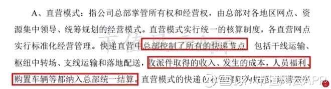 這在一定程度上與順豐的直營模式有關(guān),直營模式是公司控制快遞的“攬收、分揀、轉(zhuǎn)運、派送”所有節(jié)點,收派件的收入、所有環(huán)節(jié)發(fā)生的成本,人員福利、車輛購置費用等都納入公司總部統(tǒng)一結(jié)算。