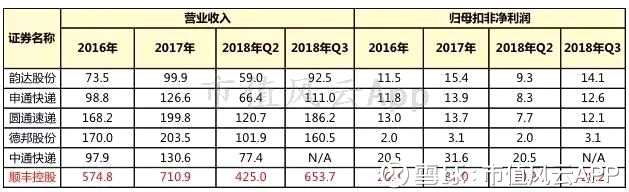 對比順豐借殼上市時,許下的業(yè)績承諾:2016年-2018年,各年扣非歸母凈利潤分別不低于21.85億、28.15億、34.88億。2016年和2017年實際實現(xiàn)26.43億、37.03億,超額完成率分別為21%、32%,而且從2018年3季報預計的2018年全年扣非歸母凈利潤最低限額34億來看,順豐將會在2018年完美收官。