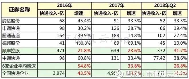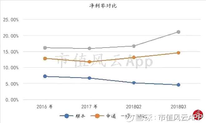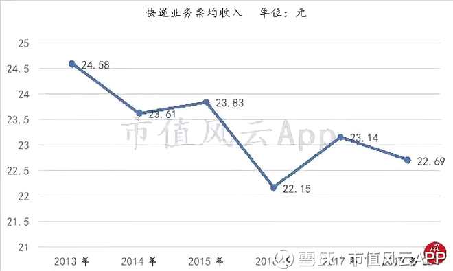 另外,從上文分析可知,順豐近年來的單票收入,總體呈現(xiàn)下降趨勢,而且2016年、2017年的業(yè)績增速也低于部分競爭對手和行業(yè)平均增速。