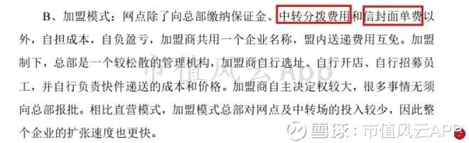而加盟模式,快遞公司只收取中轉(zhuǎn)分撥費和信封面單費,其余的定價和成本均由加盟商自行決定,自負盈虧。