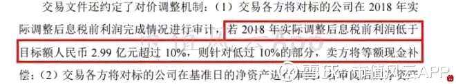 另外,標的公司承諾2018年全年調(diào)整后息稅前利潤不低于人民幣2.99億,如若不足,則低過10%的部分將由對方等額現(xiàn)金補償。