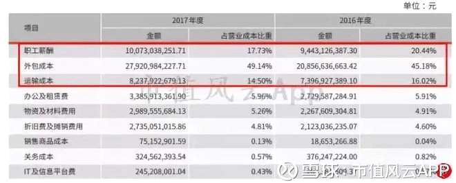 看看近兩年的研發(fā)投入情況,2017年研發(fā)人員為2800人,科技投入16億,人數(shù)及金額投入分別較2016年同比增長34%、48%,研發(fā)投入方向主要是各業(yè)務(wù)系統(tǒng)、財務(wù)系統(tǒng)以及各智慧物流項目,達到簡化流程,提高業(yè)務(wù)時效,降低運營成本的目的,從營業(yè)成本的增長情況來看,運輸成本增速的確較另外兩項成本低。