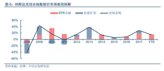 業(yè)績是驅(qū)動美股市場表現(xiàn)的主要變量。從長周期的歷史數(shù)據(jù)回溯來看,無論是近年來漲幅相對溫和的標普指數(shù),還是相對突出的納斯達克綜合指數(shù),市場的長期表現(xiàn)更多是和業(yè)績端的表現(xiàn)掛鉤。