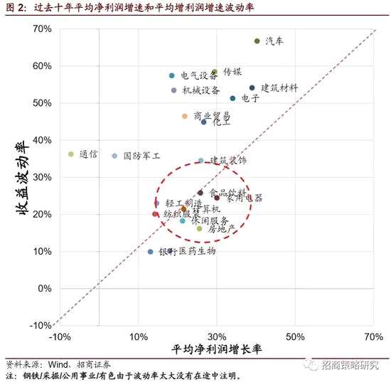 總的來看,A股的大部分行業(yè)周期性都非常顯著,盈利波動(dòng)巨大,非得把握住景氣上行周期的一波做趨勢(shì)投資才能賺到錢,所以大部分時(shí)候,A股的投資都是趨勢(shì)投資。少數(shù)行業(yè),例如食品飲料、醫(yī)藥、計(jì)算機(jī)、休閑服務(wù)、家電,盈利波動(dòng)相對(duì)穩(wěn)定,成長(zhǎng)性也較好,行業(yè)里面牛股輩出,可以算是成長(zhǎng)行業(yè)。