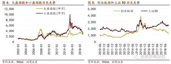 當(dāng)我們說中小創(chuàng)或者中小市值風(fēng)格時(shí),我們通常在說市值風(fēng)格,可以用大盤指數(shù)和小盤指數(shù)的關(guān)系來衡量,2010年后,還可以用創(chuàng)業(yè)板指和上證50指數(shù)的關(guān)系來衡量。