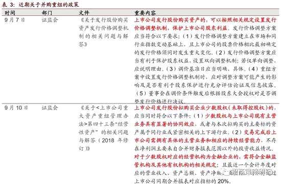 單純的政策驅(qū)動(dòng)難以成為強(qiáng)邏輯,而對(duì)于中小市值公司來說,并購(gòu)成為驅(qū)動(dòng)業(yè)績(jī)?cè)鲩L(zhǎng)的又一邏輯。而近期政策的調(diào)整讓并購(gòu)市場(chǎng)有望重新燃起硝煙。