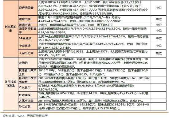 上周未進行逆回購操作,長期資金利率持續(xù)下降:上周央行未進行逆回購操作,無到期,本周公開市場操作未實現凈投放或凈回籠。10月累計逆回購凈回籠600億元;9月累計逆回購凈投放2700億元;上周央行投放4035億MLF,等量續(xù)作到期MLF。數據上看,上周SHIBOR(3個月)收于3.001%,上升2.00BP;銀行間同業(yè)拆借(1天/7天)收于2.08%/3.17%,分別變動-44/-23BP;銀行間質押式回購利率(1天/7天)收于2.07%/2.52%,分別變動-43/-10BP;AAA+同業(yè)存單到期收益率(1個月/3個月/6個月)收于2.44%/3.02%/3.29%,分別變動-3BP/3BP/3BP。上周3A企業(yè)債到期收益率(3年/5年/7年)收于3.95%/4.19%/4.54%,較前一周分別變動-5.09/-3.26/-4.96BP。上周中短票據到期收益率(1年/3年/5年)收于3.64%/3.98%/4.25%,較前一周分別變動3.56/4.01/3.07BP。上周長三角票據直貼利率收于3.10%,較前一周下降5BP。上周末國債到期收益率(1年/5年/10年)為2.75%/3.31%/3.50%,較前一周分別變動-6.67/-0.98/-3.59BP。