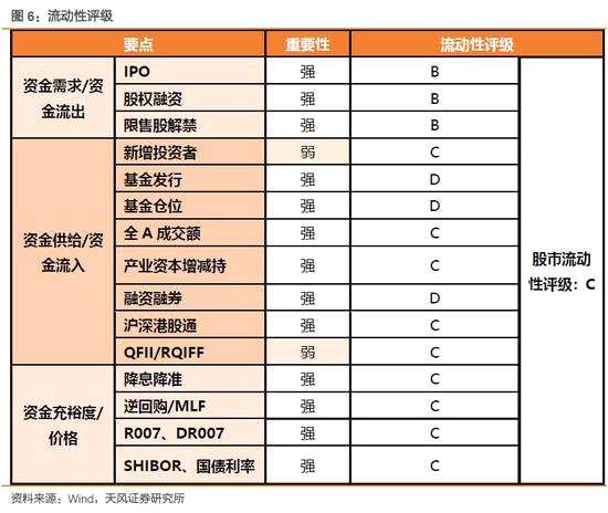 下表選取關乎股市流動性的15個指標,強指標10分,ABCDE分別對應10分、8分、6分、4分、2分;弱指標減半,ABCDE分別對應5分、4分、3分、2分、1分(則滿分140分,最低28分)。最終通過加權來獲得綜合評級。