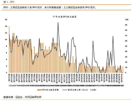 上周核發(fā)2家IPO批文,基金發(fā)行放量增加:上周證監(jiān)會核準2家IPO批文,未公布募集金額;上上周證監(jiān)會未發(fā)布IPO批文。以成立日計,上周共有10只普通股票型+偏股/平衡混合型+靈活配置型基金發(fā)行,共計16.73億份;上上周發(fā)行份額為28.28億份 。