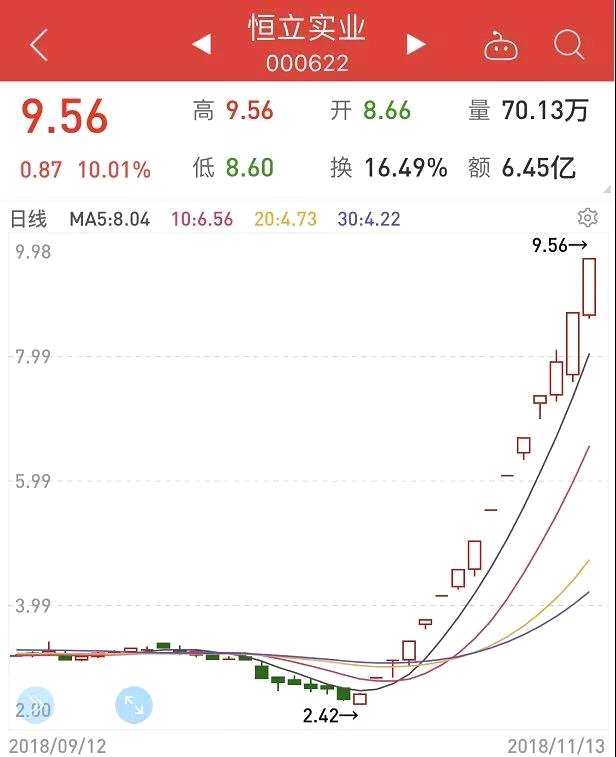 先來看“妖王”——恒立實業(yè):自10月22日開始至11月13日,14個交易日內(nèi)(期間有停牌)收獲13個漲停板,區(qū)間漲幅達(dá)270.54%。