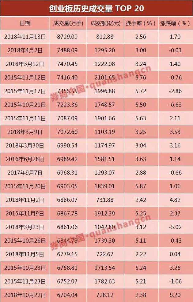 創(chuàng)業(yè)板成交量達(dá)8729萬手,創(chuàng)歷史紀(jì)錄;