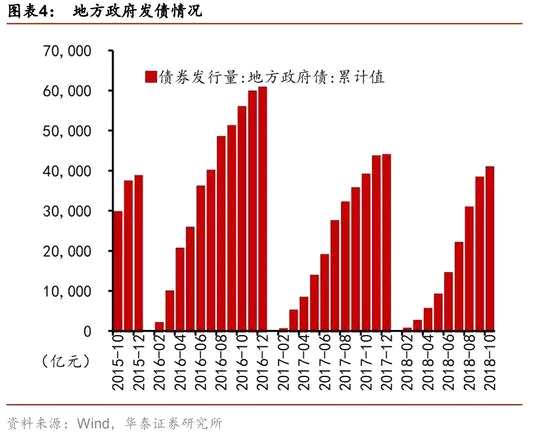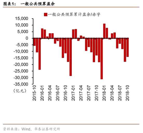 10月份國內(nèi)增值稅同比下降2.8%,降幅比上月擴(kuò)大1.6個百分點,連續(xù)兩月維持負(fù)增長,表明未來大幅減稅難度或較大。政府為了對沖經(jīng)濟(jì)下行壓力而推出的降低增值稅率、出口退稅率提升等政策措施,目前均在稅收收入中有所反映。1-10月,關(guān)稅同比下降0.5%,出口退稅同比增長9.2%(體現(xiàn)為減收)。我們認(rèn)為,在財政收入放緩,支出剛性較強的情況下,預(yù)計2019會將赤字率從2.6%提高至3%。