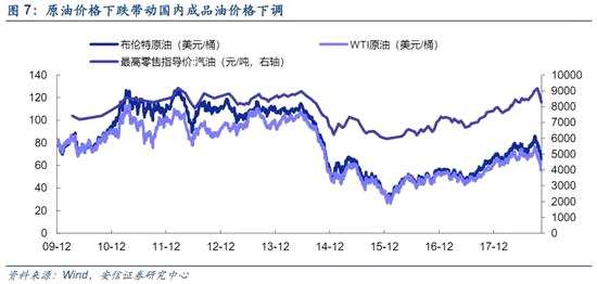 近期對A股市場的一個(gè)積極因素是國際原油價(jià)格下跌,國內(nèi)兩次下調(diào)成品油價(jià)格,通脹壓力預(yù)期邊際趨緩。受沙特增產(chǎn)、美國原油庫存超預(yù)期增長、美國放寬對伊朗制裁、需求預(yù)期下滑等一系列因素影響,近期國際市場原油價(jià)格大幅震蕩下降。國家發(fā)展改革委16日發(fā)布消息,按照現(xiàn)行成品油價(jià)格形成機(jī)制,自2018年11月16日24時(shí)起,國內(nèi)汽油、柴油價(jià)格每噸分別降低510元和490元。這刷新了近4年國內(nèi)汽油和柴油價(jià)格最大降幅。