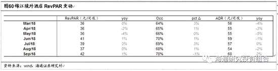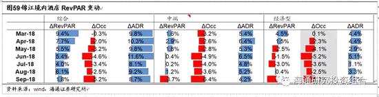 從經(jīng)營指標(biāo)上看:簽約店再創(chuàng)新高,節(jié)假日因素拖累3QRevPAR增速但仍是正增長。(1)開店再提速但關(guān)店影響凈增店規(guī)模,簽約店新高。①1-9月毛開店841家,凈增店499家(2017年同期635家)。②9月底,簽約未開業(yè)3305家再創(chuàng)新高,已開業(yè)酒店7193家,加盟占85.9%中高端占30.5%;房量59.1萬間,加盟占83.7%中高端占38.8%。(2)受到雙節(jié)等因素影響,三季度境內(nèi)酒店RevPAR全部門店增速放緩至4.1%(Occ/ADR各減3.7pct/增8.7%),經(jīng)濟(jì)型/中端各減2.3%/0.7%。1-9月,全部/18M+酒店RevPAR分別同比增長5.9%/2.7%。①全部門店:經(jīng)濟(jì)型/中端RevPAR分別同比減少0.7%、增長1%;②成熟門店:經(jīng)濟(jì)型/中端RevPAR分別同比增長0.2%、增長5.8%。