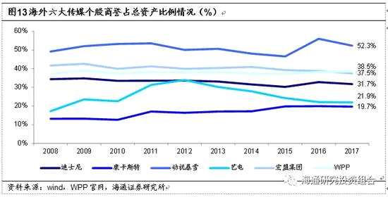 3)翻閱2008-2017年六大樣本公司年報(bào),我們發(fā)現(xiàn)公司均在每財(cái)年對(duì)商譽(yù)及無形資產(chǎn)等做減值測試,且均無發(fā)生重大減值事項(xiàng)。因此,優(yōu)質(zhì)標(biāo)的收購以及并表后的業(yè)務(wù)融合發(fā)展是A股傳媒公司需要借鑒和提升的。