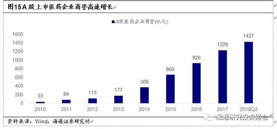 2010年,A股醫(yī)藥生物行業(yè)(申萬行業(yè)分類)的總商譽(yù)為33.39億,2013年后,醫(yī)藥板塊多家上市公司進(jìn)行并購,一方面驅(qū)動(dòng)了上市公司的業(yè)績的增長,另一方面由于溢價(jià)收購,也推高了公司的商譽(yù)。2018年第3季度總商譽(yù)為1426.63億。不到8年時(shí)間,醫(yī)藥生物行業(yè)商譽(yù)漲幅高達(dá)42.72倍。