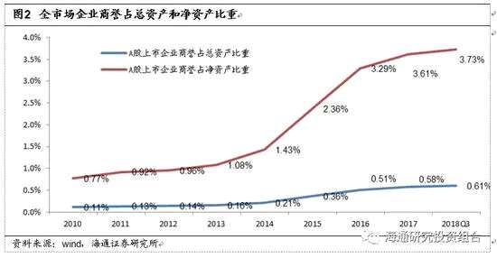1)總量相對(duì)可控。截止2018年3季報(bào),全市場總商譽(yù)在1.45萬億。全部上市企業(yè)商譽(yù)占全部上市企業(yè)總資產(chǎn)和凈資產(chǎn)比重為0.61%和3.73%。從總量角度看,商譽(yù)減值問題對(duì)全市場潛在沖擊有限。