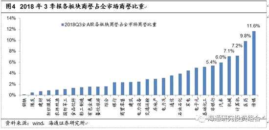 截至2018年3季報(bào),A股各板塊商譽(yù)占全市場商譽(yù)比重前五行業(yè)分別是傳媒、醫(yī)藥、計(jì)算機(jī)、機(jī)械、汽車,占比為11.6%、9.8%、7.2%、7.1%和6%