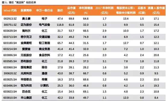 天風證券的老師表示,未來1到2個月,市場有望重拾對“高送轉”主題的關注,并給出了潛在的“高送轉”標的名單:
