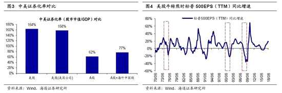 美股走熊利于A股。美國處于加息周期過程中,并且美股估值與盈利已經(jīng)處于歷史高位,美股很有可能已經(jīng)處于牛轉(zhuǎn)熊的拐點。美聯(lián)儲從2015年底開始加息,聯(lián)邦基礎利率從15年底的0.1%上升到目前的2.2%,美國10年期國債利率從16年中的1.5%觸底回升至當前的3.2%。10月以來美股大跌的本質(zhì)是美股估值過高。美股本輪長牛起始于2009年3月,標普500指數(shù)至今最大漲幅341%,已超過上一輪牛市的漲幅。從估值水平看,以1954年為起點,標普500PE(TTM)(下同)均值為16.7倍,向上一倍標準差為21.5倍。在10月初標普500指數(shù)PE為21倍,接近一倍標準差,截至11/23日標普500的PE回落至18.7倍,仍處于位于1954年以來從低到高的63%分位。美股盈利同樣處于歷史高位,從1954年以來標普500的EPS同比增速均值為7%,向上一倍標準差為24%,而標普500指數(shù)截至2018Q3的EPS增速為26%,處于歷史盈利增速高位。而相比之下,A股目前的PE、PB估值很低。前期報告《16年來的A股磨大底背景類似02-05年-20180809》、《A股估值底的含金量-20180829》分析過,中期視角看A股市場目前處于第五輪周期底部,估值已經(jīng)與前幾次市場底部相似,1996年1月19日上證綜指512點、2005年6月6日998點、2008年10月28日1664點、2013年6月25日1849點時全部A股PE(TTM,整體法,下同)11.5~18倍,PB(LF,整體法,下同)PB1.5~2.2倍,前期低點上證綜指2449點(2018/10/19,下同)是分別為13.4倍、1.48倍,已經(jīng)處于底部區(qū)域下軌附近。從分位來看,萬得全A當前PE處于2005年以來歷史分位數(shù)從低到高的6%, PB處于歷史分位從低到高的1.1%。對比中美兩國的證券化率(股市市值/GDP),美國目前證券化率158%,A股只有62%,A股與海外中資股合計才77%。隨著A股納入MSCI和富時羅素指數(shù),如果美股牛轉(zhuǎn)熊,全球資產(chǎn)配置角度A股吸引力在上升。