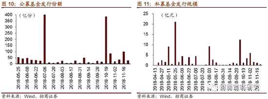資金供給方面,11月19日-11月23日,公募基金發(fā)行28.6億份,較前期減少71.1億份(因11月14日廣發(fā)1-3年國開債A發(fā)行了213.7億份,對當周基金發(fā)行份額的影響較大);私募基金成立募資0.4億元;融資繼續(xù)凈買入9.3億元,規(guī)模較上周減小55.5億元;截至2018年11月23日,融資余額為7688.1億元;陸股通由凈流入71.4億元轉(zhuǎn)為凈流出22億元。
