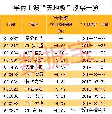 數(shù)據(jù)寶統(tǒng)計顯示,今年以來,包含賽象科技在內(nèi),共有11只個股曾上演“天地板”行情,其中過半數(shù)為ST股票,如*ST富控(維權(quán))、ST宏盛、*ST凱迪(維權(quán))、*ST 安泰、【*ST龍力(002604)、股吧】(維權(quán))等。