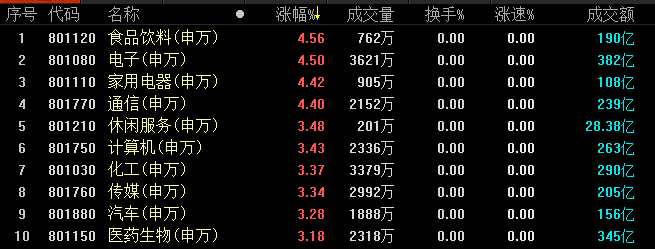 家用電器行業(yè)整體上漲4.42%,美的集團、小天鵝A等漲逾5%;醫(yī)藥生物行業(yè)整體上漲3.18%,復星醫(yī)藥、藥明康德等漲逾5%。