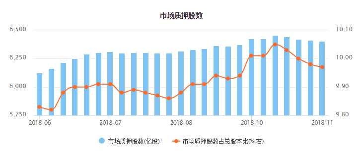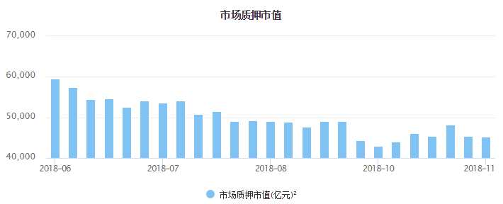 數(shù)據(jù)顯示,11月初,市場質(zhì)押股數(shù)6456.89億股,市場質(zhì)押股數(shù)占總股本10.05%,達(dá)到年內(nèi)峰值。截至12月4日, 市場質(zhì)押股數(shù)6402.72億股, 較11月初較少約8.4%。市場質(zhì)押股數(shù)占總股本9.97%, 市場質(zhì)押市值為45262.19億元,較今年6月初市場質(zhì)押市值59527.94億元減少約23.96%。當(dāng)然,質(zhì)押市值大幅減少,也有股指走低股價下跌的因素。
