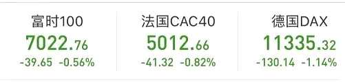 美國能源股全線收低,EOG能源跌3.74%,斯倫貝謝跌3.67%,康菲石油跌3.17%,雪佛龍跌2.84%,??松梨诘?.2%。