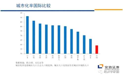(1)城市化率,中國接近還不到60%。中國的城市化率還有比較大的提升共建。提升到75%以上應該說都是可能的。