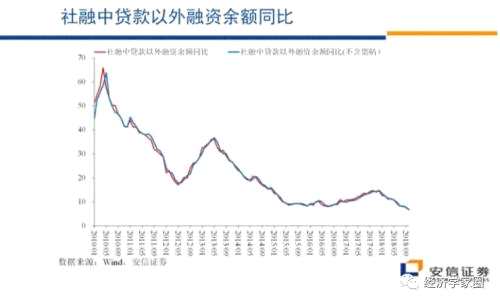 在市場上我們可以看到,融資的需求下降,融資的利率也在下降。我們知道中國的信貸市場和債券市場是分割的,融資需求減速上,我們看到社融在減速,在社融之中貸款以外科目減速是比較明顯的,但真正的問題是,融資需求減速的背景下,信貸市場的利率是在上升的。